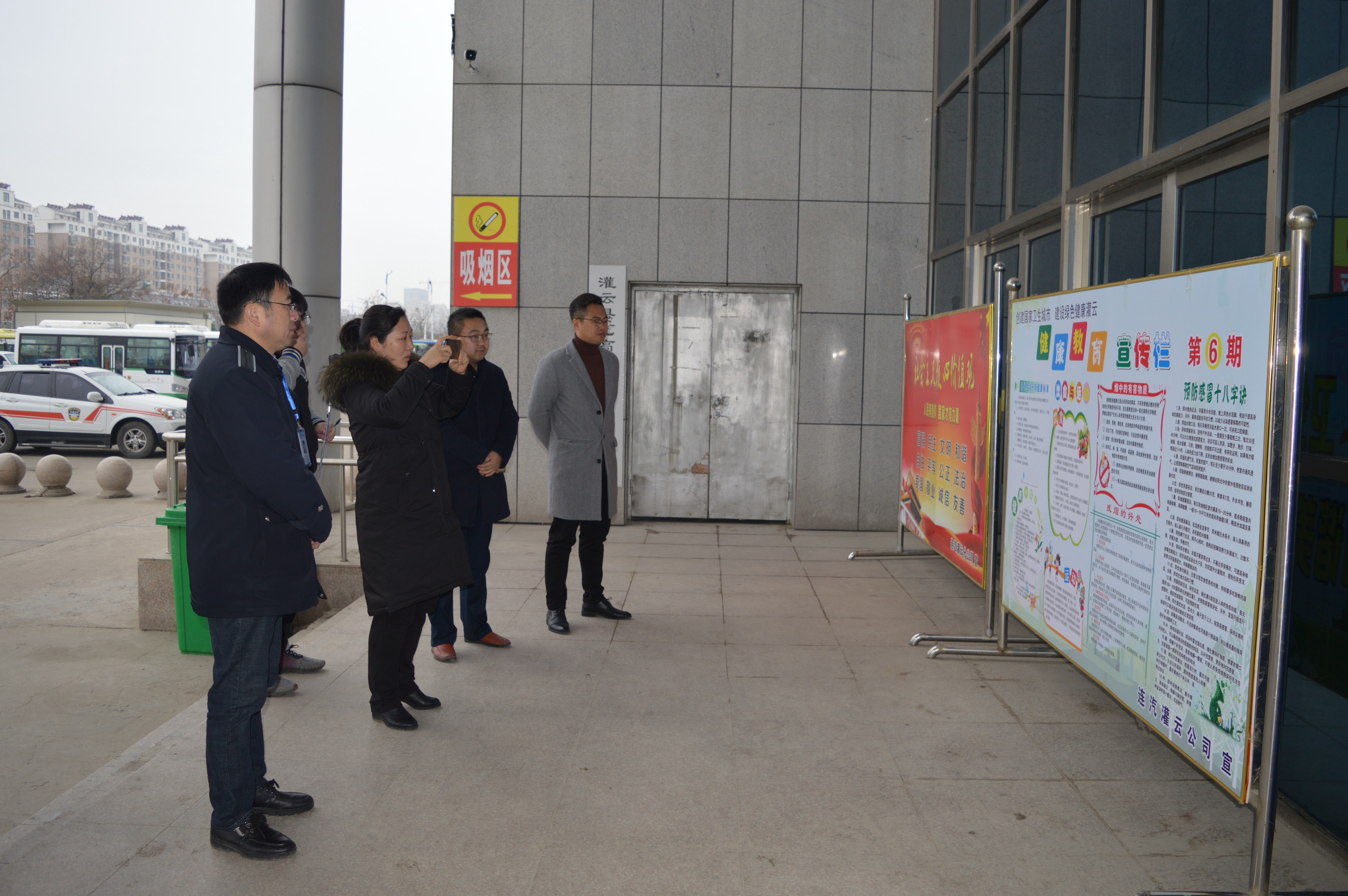 灌云公司副经理张洪伟向检查组汇报了近期创卫开展情况。检查组还对职工健康教育、“灭四害”等开展情况进行了详细询问。随后,实地检查了候车厅卫生间、候车厅等场所的环境,禁烟标识、宣传展板的设置及垃圾分类等情况,全面了解公司开展“创卫”宣传教育活动、落实创卫工作等具体举措。检查结束后,检查组对灌云公司创卫工作给予充分肯定。